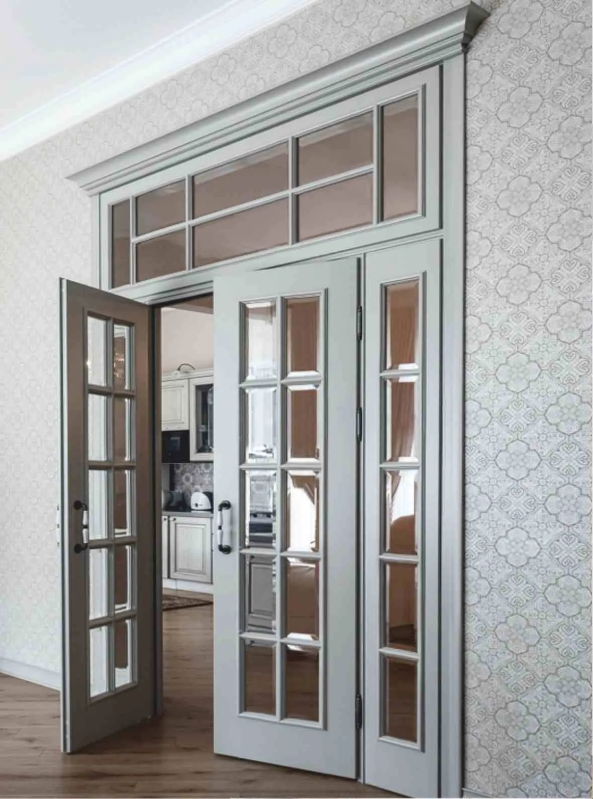Цены указаны за стандартную комплектацию: Полотно 2000*800 с прозрачным стеклом с фацетом с двух сторон, Коробка дверная телескопическая или компланарная (2,5 шт.), Наличник плоский телескопический или компланарный 2-х сторон.