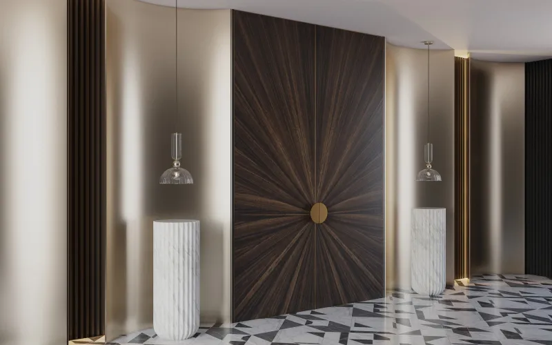 Дверное полотно имеет отличную ровную поверхность. - Отделка – различные виды строганого шпона ценных пород древесины.